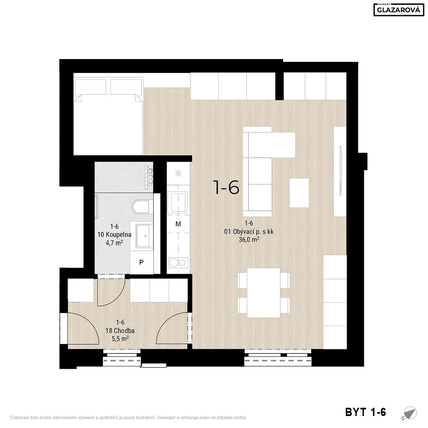 Zobrazený půdorys bytu, včetně zakresleného vybavení a spotřebičů, je pouze ilustrativní. Prodávající si vyhrazuje právo na případné změny.