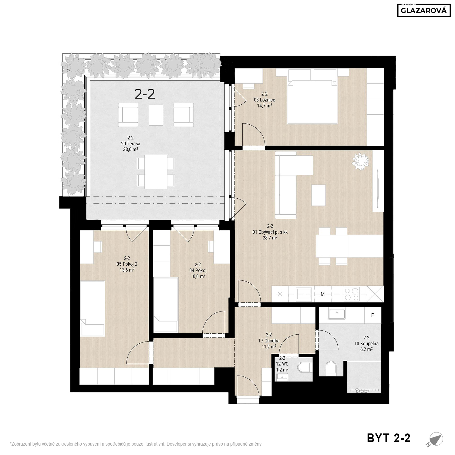 Zobrazený půdorys bytu, včetně zakresleného vybavení a spotřebičů, je pouze ilustrativní. Prodávající si vyhrazuje právo na případné změny.