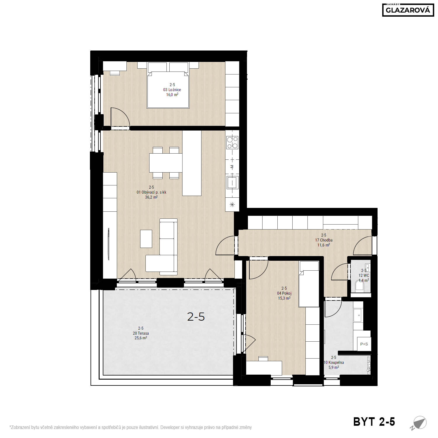 Zobrazený půdorys bytu, včetně zakresleného vybavení a spotřebičů, je pouze ilustrativní. Prodávající si vyhrazuje právo na případné změny.