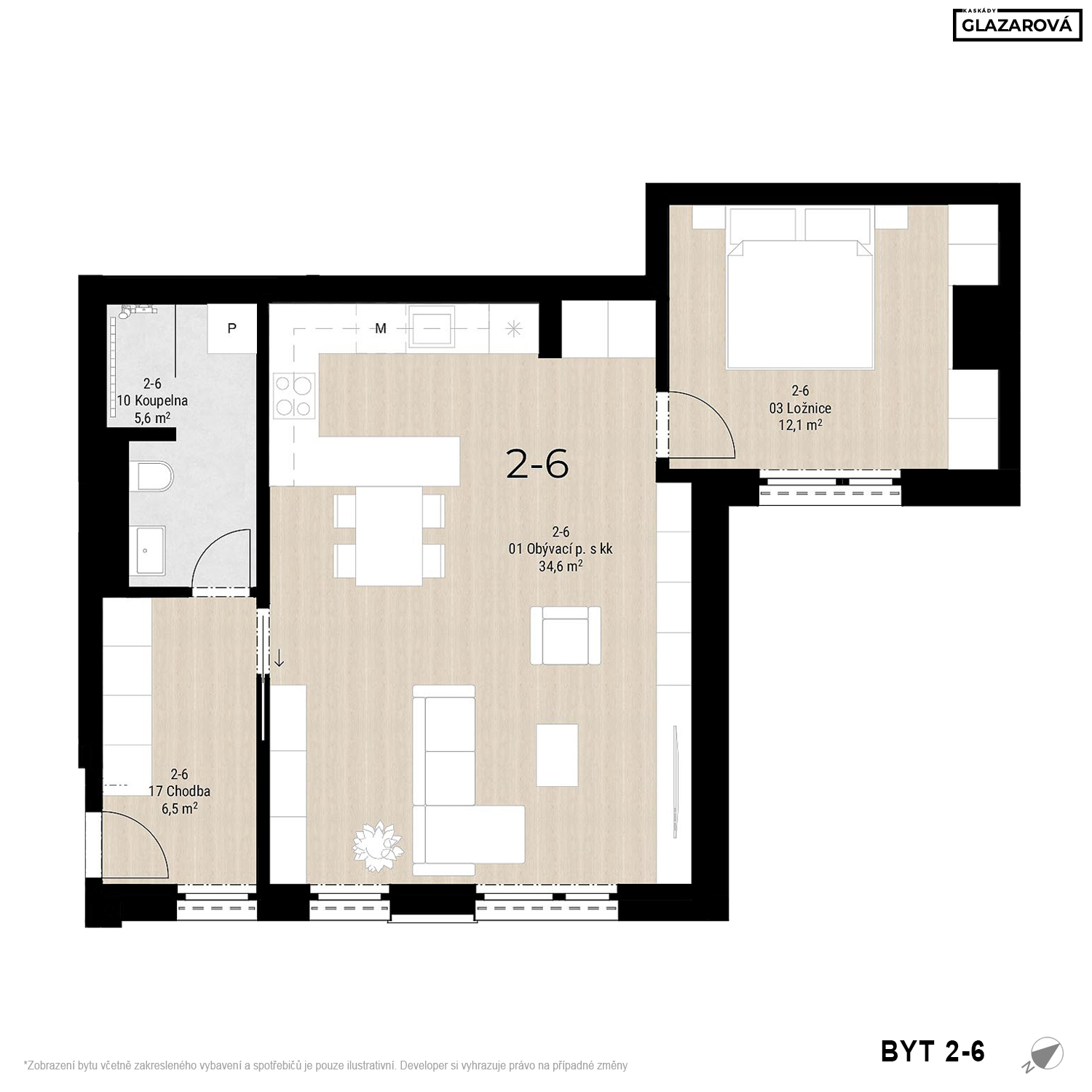 Zobrazený půdorys bytu, včetně zakresleného vybavení a spotřebičů, je pouze ilustrativní. Prodávající si vyhrazuje právo na případné změny.